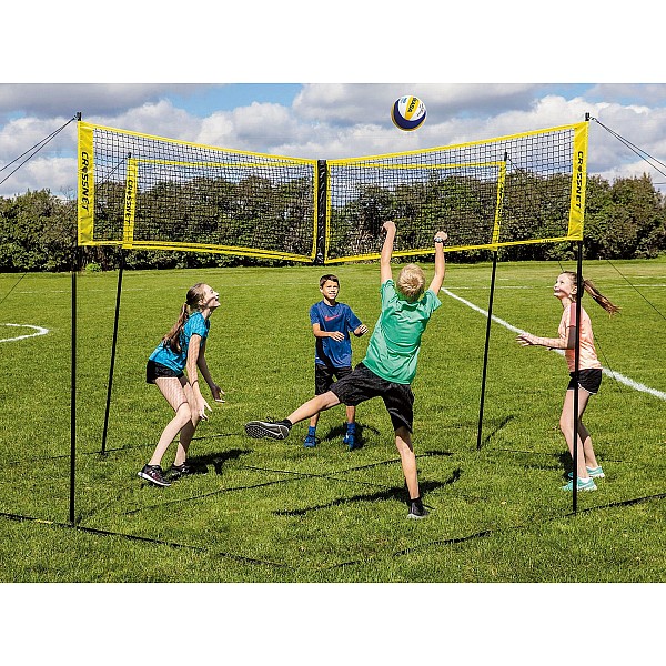 CROSSNET bietet das erste Volleyballspiel, welches in vier Feldern gespielt wird. Die Spieler treten in einem Vierkampf gegeneinander an. Ziel ist es nicht auszuscheiden und in das 4. Feld zu gelangen. Ein Spieler scheidet aus, wenn der Ball im eignen Feld den Boden berührt. Der Spieler, welcher zuerst 11 Punkte erzielt und gleichzeitig 2 Punkte Vorsprung hat, gewinnt das Spiel.