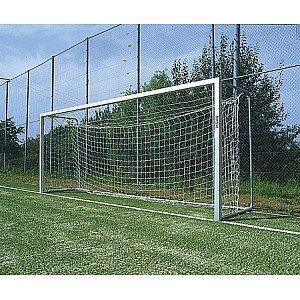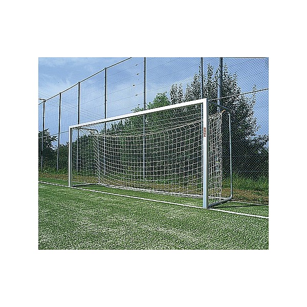 Das transportable BENZ Jugend Fußballtor 5 x 2 m, Tortiefe 125 cm, mit einem Torrahmen aus Aluminium Spezialprofil und festen Netzbügeln aus starkem Stahlrohr, ist in 3 Outdoor Versionen erhältlich. Diese unterscheiden sich in der Torrahmen Eckausführung. Das verschraubte Modell ist aus eloxiertem Aluminium gefertigt, die verschweißten Ausführungen aus Aluminium natur. Beim hochwertigsten, stabilsten Tor aus dieser Serie sind die Ecken mit einem Spezial Holz Inlay ausgestattet, was dieses Tor extrem verwindungssteif und belastbar macht. Das Netz wird frei zwischen den Netzbügeln aufgehängt. Jeder Netzbügel ist mit den bewährten Befestigungslaschen, zur Sicherung am Boden, versehen. Zusätzlich wird zu diesem Tortyp eine Querstrebe aus Stahl mitgeliefert, die zur zusätzlichen Stabilisierung am Boden zwischen den Netzbügeln verschraubt wird. Die Lieferung erfolgt komplett mit Rohrabschlusskappen und Kunststoff-Netzhaken zur einfachen Netzmontage. Nach DIN EN 749. TÜV geprüft durch TÜV AUSTRIA. Lieferung ohne Netz unfrei ab Herstellerwerk! ACHTUNG! Tore sind grundsätzlich gegen Kippen am Boden zu sichern!