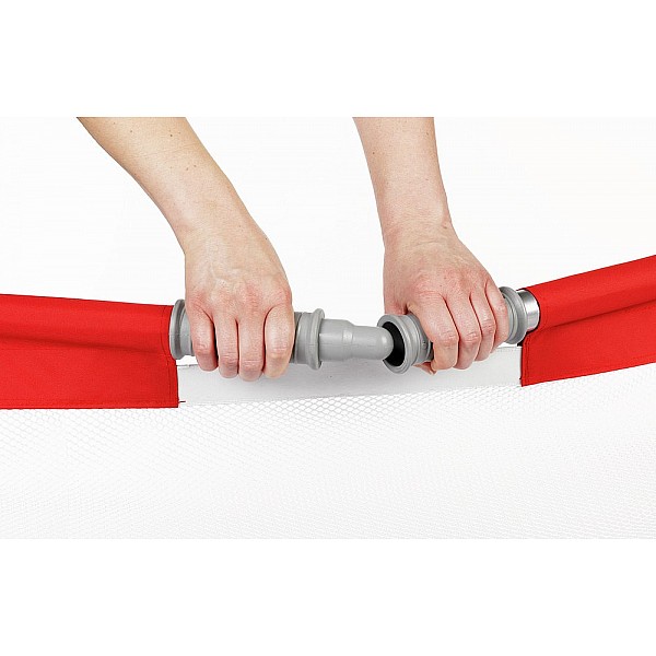 - Engmaschiges Tornetz, befestigt mittels Klettverschluss – sicher und schnell montiert
