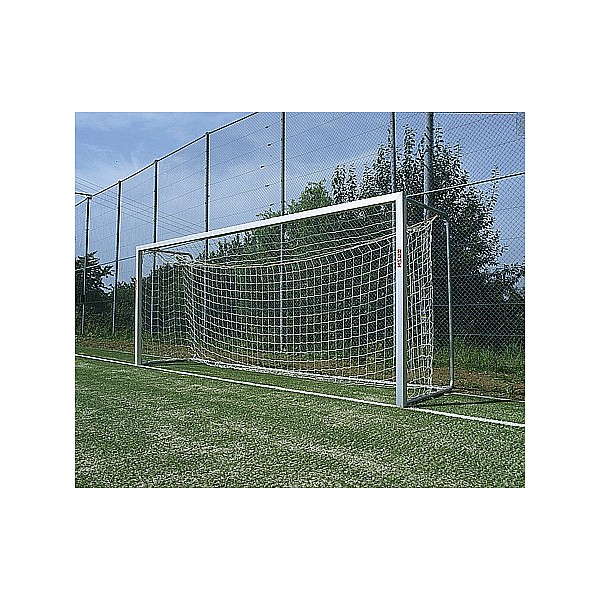 Alu-Jugend-Fußballtor eckverschweißt, mit lackierten, klappbaren Netzbügeln. Tortiefe 1,25 m. Mit Bodenquerrohr. . Netzbügel mit Befestigungslaschen für Bodenbefestigung. Kunststoff-Netzbefestigungskeile. .