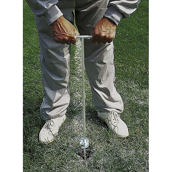 Zum Säubern von Grenzstangen-Bodenhülsen Ø 50 mm. Stahlkonstruktion, glanzverzinkt. Einfachste Bedienung: Bohrer wird in die Hülse gedreht und mit Schmutz und Erde hochgezogen - fertig! Die Grenzstangen können wieder eingesetzt werden.