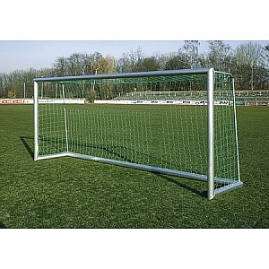 5x2 m, transportables Jugend-Fußballtor, besonders stabiles Ovalprovil 120x100 mm nach DIN, vielfache Innenversteifung und Doppelnut, so dass die Netzhalter nur wenige mm über dem Radius sichtbar sind (verletzungsneutral). Der Bodenrahmen und -holme bestehen aus dem gleichen Profil - Tor ist dadurch standsicherer und robuster, Netzbefestigung erfolgt ebenfalls im unteren Bereich über die Netzhalter Große feuerverzinkte Stahl-Netzbügel, welche in den Eckbereichen verschraubt sind, verleihen dem Tor eine sehr große Stabilität. Pfosten und Holme sind fest miteinander verschweißt. Lieferung mit unverrottbaren Netzhaltern und Antikipp-Bodenverankerung für Weichplätze (4 spiralförmige Erdnägel sowie Haltebügel). Vor dem Zusammenbau können diese Tore mit Sand gefüllt werden und sind dadurch noch standsicherer. Lieferung ohne Netz.