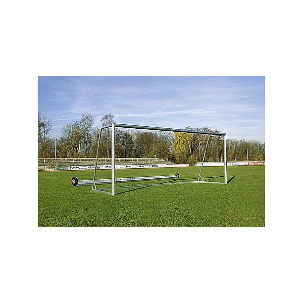 • Auf großen Transportrollen sind die Tore inklusive Gewicht angekippt leicht zu transportieren.