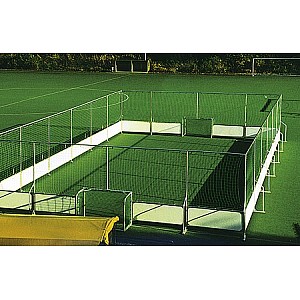 Der gesamte Street-Soccer Court besteht aus einer Alu-Rahmenkonstruktion, 30 mm dick, und weiß laminierten Hartfaserplatten, 25 mm dick, mit den Maßen 2,00 x 0,86 m. Die Konstruktionshöhe beträgt 1m, die Schutznetzhöhe ca. 3 m. Gesamthöhe ca. 3 m.Die einzelnen Elemente werden einfach in die Standpfosten eingehängt - fertig! Die Anlage kann von 2 Leuten in 1-2 Stunden auf jedem Untergrund aufgestellt werden. Die Banden-Elemente können werblich hervorragend genutzt werden, da sie beidseitige eine glatte KU-Oberfläche haben. Lieferung inkl. 2 Toren 1,80 x 1,20 m. Die Anlage wurde gemeinsam mit dem Niedersächsischen Fußballverband entwickelt und ist dort seit Jahren erfolgreich im Einsatz. Sie eignet sich hervorragend für Straßenfeste, Schulen und Kindergärten, für Public-Relation und andere Marketingaktivitäten. Bei Einsatz im Außenbereich ist darauf zu achten, dass die Anlage nicht ständig den Witterungseinflüssen ausgesetzt ist, da es sonst zu Schäden kommen kann.
