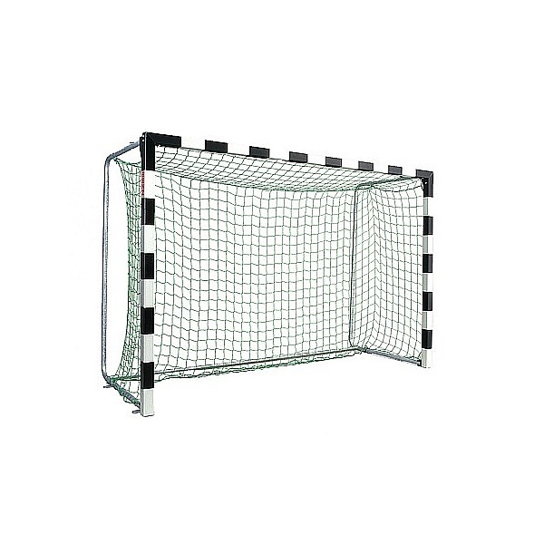 Das BENZ Handballtor mit verschraubten Ecken ist mit einem, hinten auf den Torrahmen aufgesetzten, Stahl Verstärkungswinkel ausgestattet und gibt dem Torrahmen eine enorme Stabilität. Torpfosten und Latte sind aus Aluminium Spezialprofil 80 x 80 mm, mit schwarz lackierten Feldern. Die nicht klappbaren Netzbügel sind aus starkem, verzinkten Stahlrohr, die dem Handballtor einen einmaligen Stand verleihen. Zusätzlich ist dieses Outdoor Handballtor unten mit einer Querstrebe zwischen den Netzbügeln versehen, die zwischen den Netzbügeln verschraubt wird. Das Netz wird frei zwischen den Netzbügeln aufgehängt. Jeder Netzbügel wird mit den bewährten Befestigungslaschen versehen. Die Ausführung der BENZ Befestigungslaschen wurde so in die DIN übernommen. Komplett mit Rohrabschlusskappen und Kunststoff-Netzhaken zur einfachen Netzmontage. Nach DIN EN 749, IHF Zulassung. TÜV geprüft durch TÜV AUSTRIA. Lieferung ohne Netz, ohne Montage.