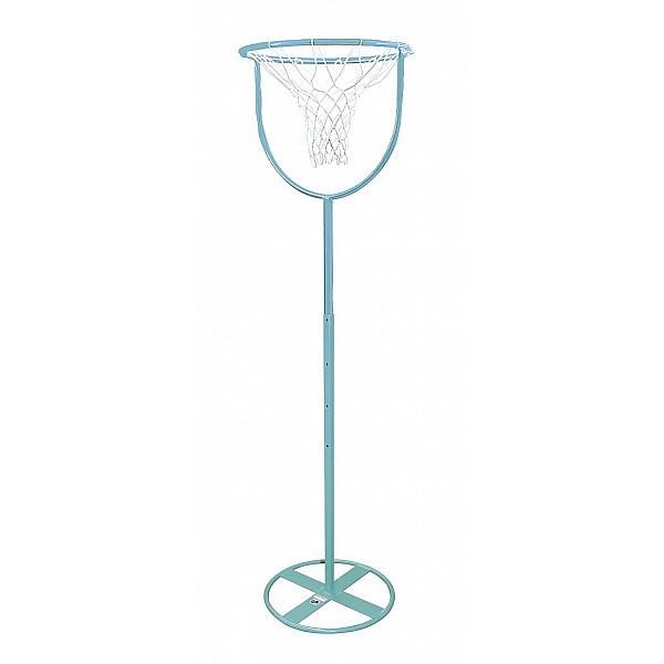 Stahlrohrausführung mit Stahlfuß Ø 59 cm, Korb und Netz, nach Vorschrift. In der Höhe von 2,0 - 2,5 m verstellbar. Gewicht 13.2 kg
