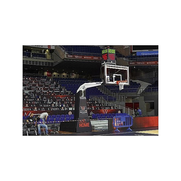 Fahrbare Basketballanlage, die durch einen federgestützen Lift-Mechanismus sehr leicht in Spielposition aufgerichtet und dann wieder in Fahrposition abgesenkt werden kann. Glas-Zielbrett 183 x 107 cm SuperGlass pro Backboard mit Polsterung. Neuer Flex-Korb mit Abklapp- und Drehfunktion im gesamten Winkelbereich von 180°. Springt selbst nach den härtesten Dunkings in seine Ausgangsposition zurück. Direkte Verschraubung von Brett und Korb für maximale Sicherheit. Kein direkter Kontakt vom Korb mit dem Glas-Zielbrett, daher höchstmögliche Sicherheit beim Dunking. Einstellbare Ringhöhe von 2,44m - 3,05 m. Prallschutz aus 10 cm starkem Material. Optimaler Transport durch insgesamt 8 Rollen, 2 x vorne, 6 x hinten. In Spielposition gewährleistet ein Gegengewicht von 900 kg einen perfekten Stand der Anlage. Zum Lieferumfang gehört noch ein Bodenverankerungsset, das aber nicht zwingend installiert werden muss. Länge in der Spielposition: 538 cm. Maße im Lagerungszustand: Länge 479 cm, Höhe 218 cm. Gewicht: 1500 kg. Lieferung ab Werk Deutschland, ohne Aufstellung. Spielbereite Erstinstallation, sowie Vermaßung und Einweisung muss, auch aus Gewährleistungsgründen, von Spalding durchgeführt werden.