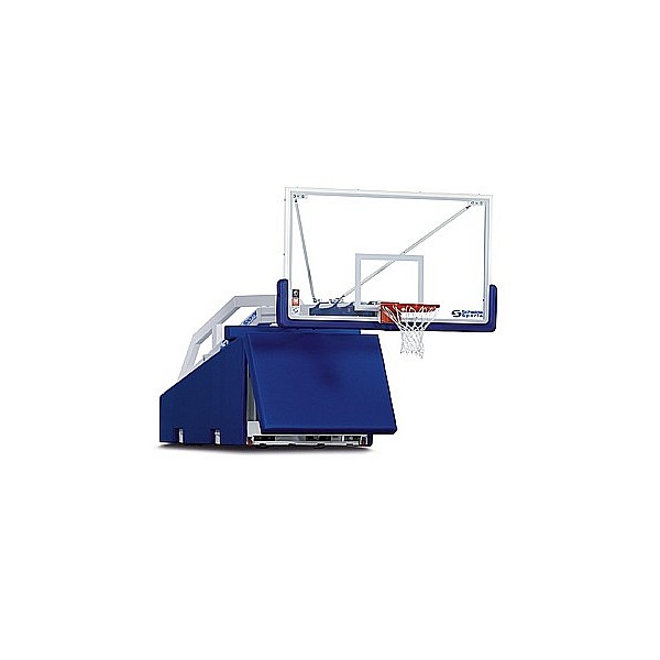 Ausleger wird in der höchsten Stellung durch eine Gasfeder abgedämpft. Direkte Verschraubung von Brett und Korb für maximale Sicherheit. Kein direkter Kontakt vom Korb mit dem Glas-Zielbrett, daher höchstmögliche Sicherheit beim Dunking. Neuer Flex-Korb mit Abklapp- und Drehfunktion im gesamten Winkelbereich von 180°. Springt selbst nach den härtesten Dunkings in seine Ausgangsposition zurück. Transport durch insgeamt 10 Rollen, 4 x vorne, 6 x hinten. In Spielposition gewährleisten 2 Ständerfüße vorn mit Gummitellern und Schraubmechanismus perfekten Stand der Anlage, arretieren sie sicher und stabil bei 305cm Wettspiel-Korbhöhe und absorbieren Vibrationen. Rückseite des Grundrahmens mit Bodenverankerungs-Set, Frontseite mit Feststellbolzen auf beiden Seiten für gleichbleibend korrekte, unverrückbare Position. Prallschutzplatte mit fester blauer Polsterung und Planenstoff für optimale Sicherheit. Glas-Zielbrett 12 mm in Metallrahmen mit blauer Polsterung..