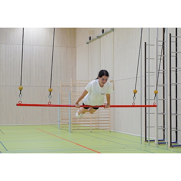 Die BENZ breite Trapezstange mit Ösen ist eine Innovation fürSchaukelspaß in der Turnhalle, auf dem Spielplatz oder im eigenen Garten. Mit einer Länge von 260 cm bietet sie ausreichend Platz, sodass mehrere Kinder oder sogar Erwachsene gleichzeitig die Freude des Schwingens erleben können. Die rote Pulverbeschichtung schützt nicht nur effektiv vor Korrosion und sorgt für eine lange Lebensdauer, sondern verleiht der Stange auch ein attraktives Aussehen, das Kinder und Eltern gleichermaßen anspricht.