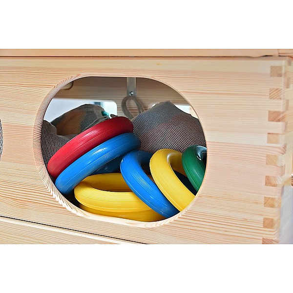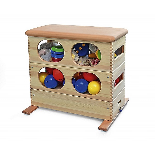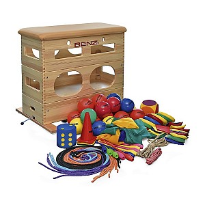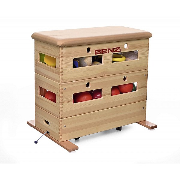 Komplettset Kinderturnkasten KITUKA bestehend aus: Mini-Sprungkasten 3-tlg.100 x 50 x 71 cm, Deckel mit echtem Rindlederbezug, Kastenteile aus Kieferholz massiv, mit 2 Bohrungen zum Einsetzen von Sprossen, Einlegeboden und ovalen Aussparungen an den Längsseiten zum Lagern von Sport- und Spielmaterial. An den Stirnseiten mit Aussparungen zum Einhängen von z.B. Turnbänken, Leitern usw. Unterteil mit eingebauter Rollvorrichtung, Sport- und Spielmaterialset für Kinderturnkasten KITUKA. Von Experten ausgewählte Produkte. Die Zusammenstellung berücksichtigt die spezifischen Anforderungen an Motorik, Koordination und Bewegung bei Kleinkindern und Kindern im Vorschul- bzw. Grundschulalter. Inklusive Sport- und Spielmaterialset für den KITUKA. Von Experten ausgewählte Produkte. Die Zusammenstellung berücksichtigt die spezifischen Anforderungen an Motorik, Koordination und Bewegung bei Kleinkindern und Kindern im Vorschul-/ bzw. Grundschulalter. Das Set besteht aus.10 x Schaum-Playball, 10 x Gymnastikball (farbig sortiert), 10 x Tennisring 180 g, 10 x Bohnensäcken (farbig sortiert), 10 x Gymnastikseil (farbig sortiert), 1 x Schwingseil 8 m, 1 x Gymnastikschnur 8 m, 30 x Gymnastik-/ & Jongliertücher (farbig sortiert), 10 x Kinder-Gymnastikkeule (farbig sortiert), 2 x Schaumstoffwürfel 16 x 16 x 16 cm, 1 x Tamburin, 4 x Markierungskegel (farbig sortiert),