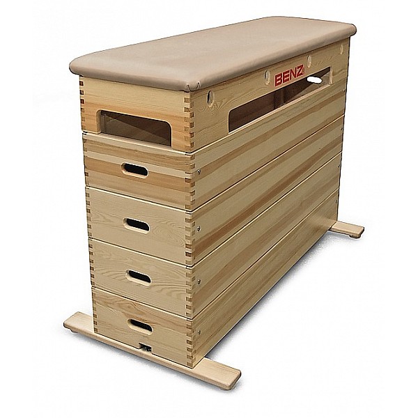 Die seit Jahren bewährten und stetig weiterentwickelten Sprungkästen bestechen durch ihre stabile Massivholzkonstruktion aus bester, naturlackierter Kiefer. Die Kastenteile sind an den Ecken gezinkt und die Eckhölzer aus Hartholz sind durchgehend verschraubt und verleimt. Bei den mehrteiligen Sprungkästen können durch Auswechseln der Kastenteile verschiedene Übungshöhen aufgebaut werden. Die hochwertige Verbundpolsterung des Oberteils ist mit echtem Kernrindleder oder alternativ mit farbigem Kunstleder bezogen. Die Hartholz-Querschwellen sind mit weißen Gummipuffern ausgestattet. Sie erhalten Spitzenqualität für höchste Ansprüche! Länge 150 cm, Breite 50 cm, Höhe 110 cm. Nach DIN EN 916, DIN 7908. Rollvorrichtung optional. Das Holz stammt aus nachhaltig bewirtschafteten Wäldern Europas - garantiert!
