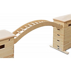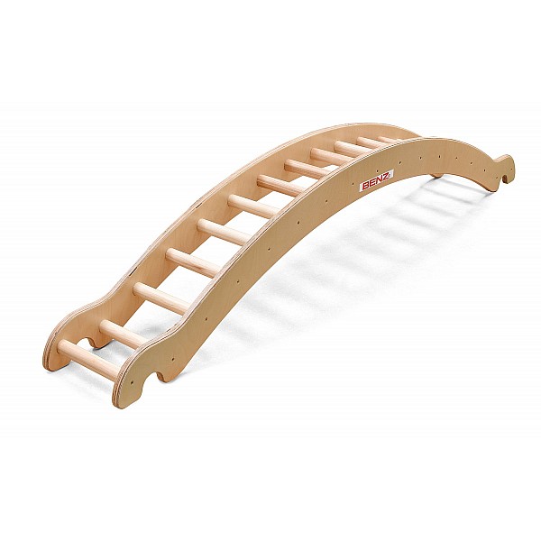 Länge 210 cm, mit beidseitigen Formenden zum Einhängen in BENZ Sprungkästen mit Spezialaussparungen. Das Einhängen mit Bogen nach oben oder unten ist möglich. In Verbindung mit mehreren Turnkästen und mehreren Bogenleitern lässt sich ein anspruchsvoller, attraktiver Parcour zum Beklettern installieren. Durch das Einlegen einer Turnmatte kann die Bogenleiter auch als Wippe und Therapiegerät am Boden eingestetzt.
