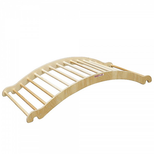 Länge 210 cm, mit beidseitigen Formenden zum Einhängen in BENZ Sprungkästen mit Spezialaussparungen. Das Einhängen mit Bogen nach oben oder unten ist möglich. In Verbindung mit mehreren Turnkästen und mehreren Bogenleitern lässt sich ein anspruchsvoller, attraktiver Parcour zum Beklettern installieren. Durch das Einlegen einer Turnmatte kann die Bogenleiter auch als Wippe und Therapiegerät am Boden eingestetzt.