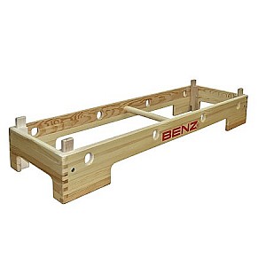 Komplett-Serie Zwischenteil für vorhandene BENZ-Sprungkästen. Mit Aussparungen an den Längs- und Stirnseiten, zum Einhängen der Zusatzgeräte sowie 4 Bohrungen an den Längsseiten für Aufnahme von Leitern und Sprossen. Länge 150 cm.